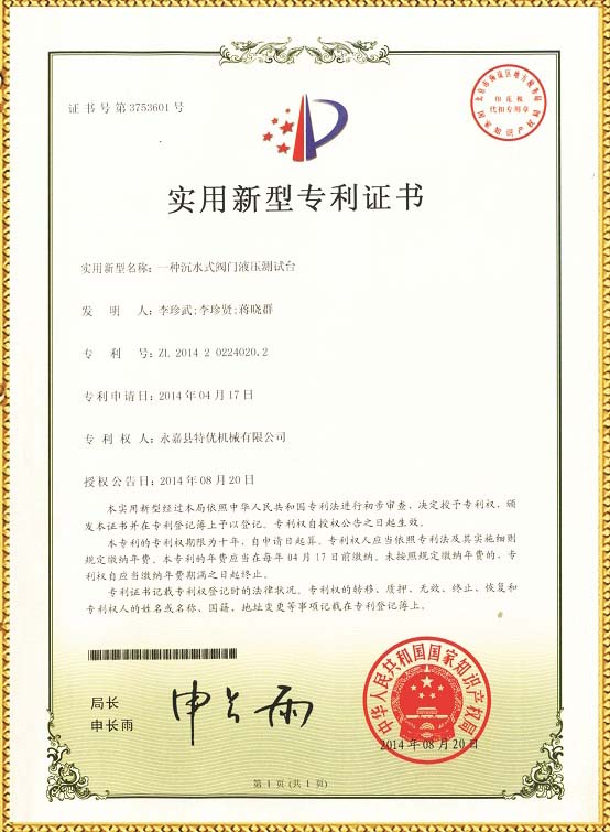浙江省制造業(yè)首臺(tái)(套)產(chǎn)品證書