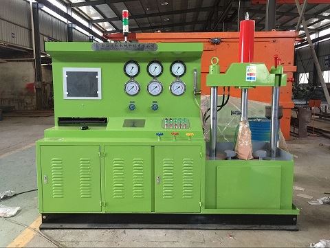 先將供壓泵用的電接點(diǎn)壓力表指針調(diào)節(jié)在所需試壓壓力位置上,關(guān)閉<氣壓開關(guān)>,然后打開<水壓閥開關(guān)>, 按<水泵起動>鈕,即可測試水密封性能的試驗。測試完畢應(yīng)先打開<泄壓閥開關(guān)>排放壓力后卸下被試閥門。